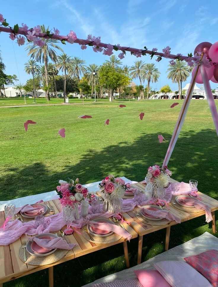 picnic decor, Picnic setting, Pink setup